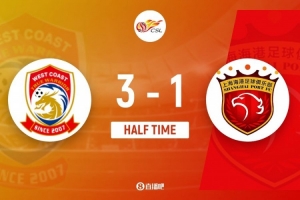 上半场比赛结束,上海海港客场暂时1-3落后青岛西海岸。